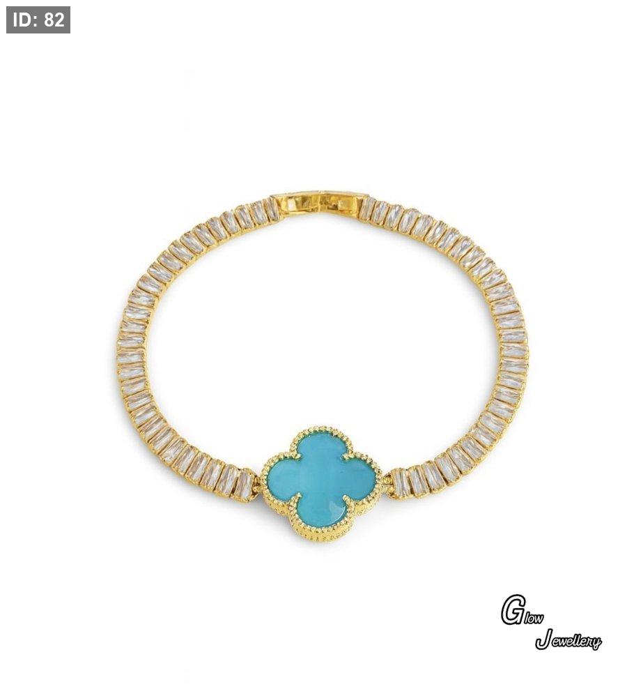 اسوارة تنس ذهبي مع حبة فان كليف لون ازرق